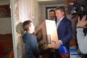 Дмитрий Мешков передал семье Березиных компьютер от депутатов фракции «Единая Россия»
