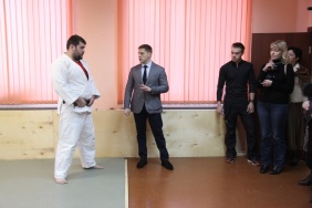 Куратор проекта «Детский спорт» Денис Лапотышкин посетил отремонтированный спортивный зал Полетаевской средней школы