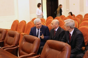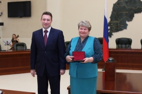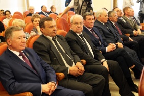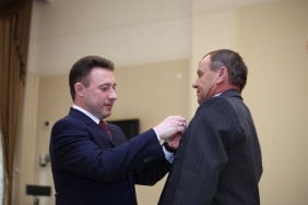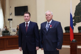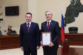 Председателю Законодательного Собрания Владимиру Мякушу полномочный представитель Президента РФ в Уральском федеральном округе Игорь Холманских вручил благодарность Президента РФ