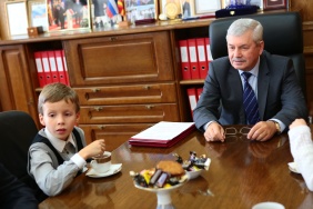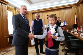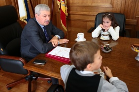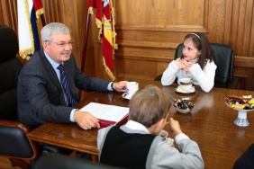 Владимир Мякуш встретился с юными дарованиями - победителями Чемпионата мира по шашкам среди юношей и девушек