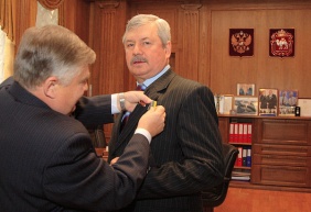 Вручение медали "90 лет профсоюзам госучереждений" председателю ЗСО Владимиру МЯКУШУ