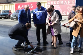 Заместитель председателя Законодательного Собрания Константин Захаров совместно с народными контролерами проверил качество нового дорожного покрытия по улице Кожзаводская в Челябинске
