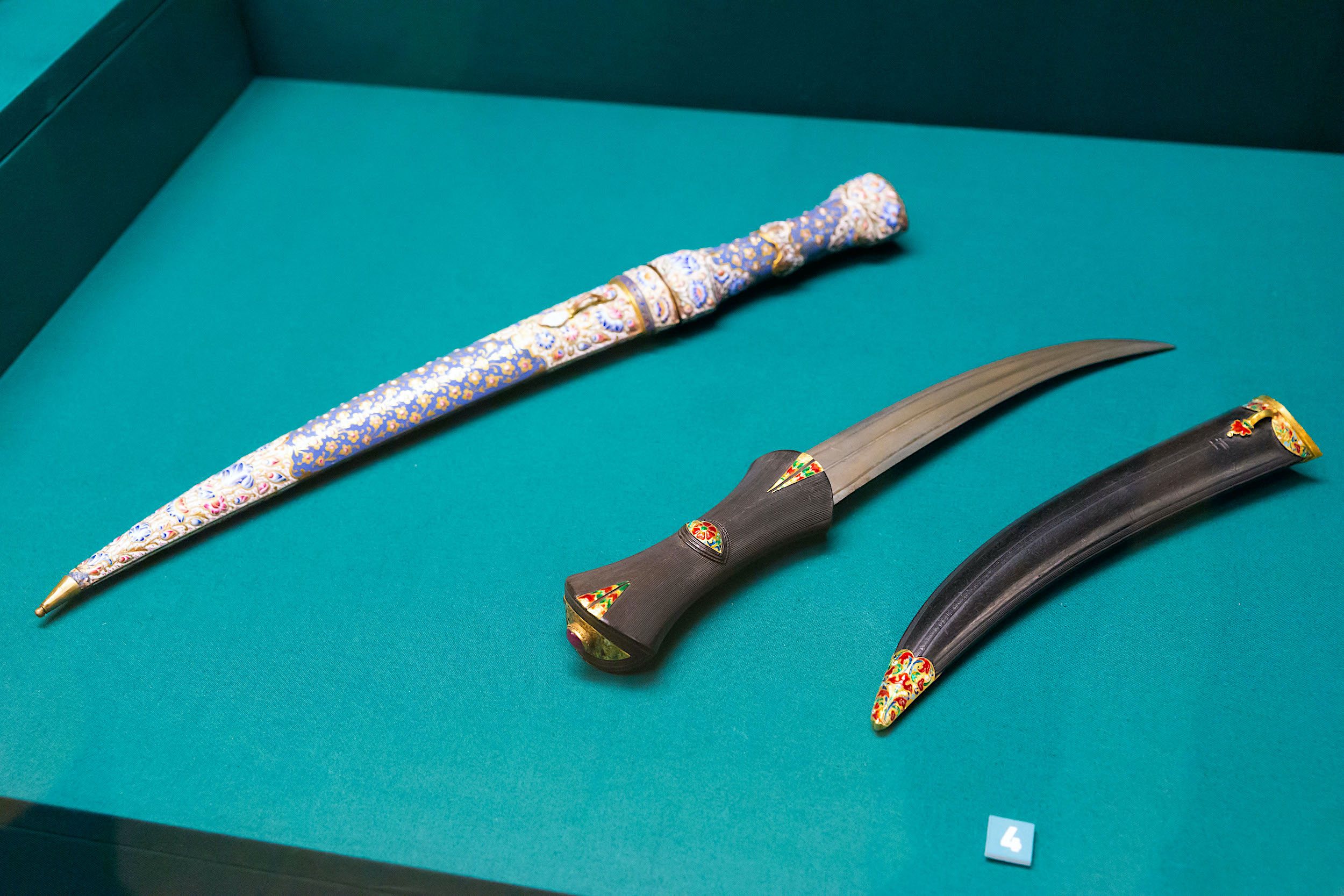 Всего в Челябинске представлено 180 предметов — произведений восточных мастеров XV–XX веков. Это богато украшенное оружие, конская сбруя, посуда, дорогие ткани, ювелирные украшения из Турции, Ирана, Кавказа, Средней Азии, Индии и Китая. Большинство из предметов экспозиции были преподнесены в дар русским царям представителями и дипломатами иностранных государств. Посланники таким образом завоевывали расположение русских царей и руководителей российского государства, демонстрировали им уважение и намерения о дружбе и сотрудничестве. Аналогов отдельным предметам нет ни в одном музее мира. С экспонатами выставки познакомился первый заместитель председателя Законодательного Собрания области Александр Лазарев.