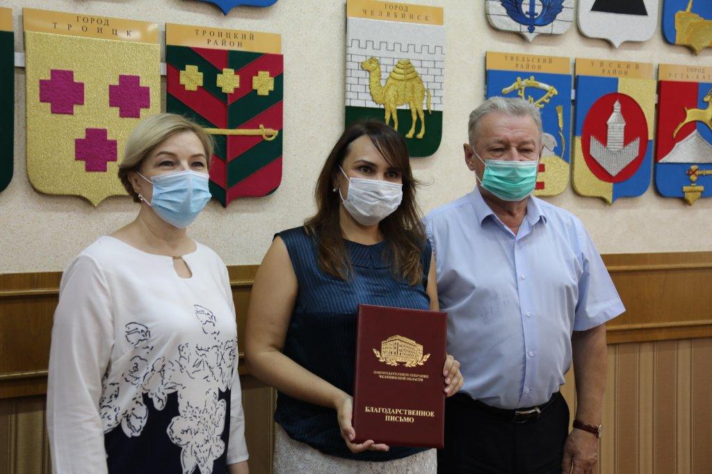 Председатель комитета по законодательству, государственному строительству и местному самоуправлению Анатолий Брагин и его заместитель Ольга Мухометьярова наградили благодарственными письмами Законодательного Собрания за многолетний добросовестный труд и высокий профессионализм адвокатов Челябинской областной коллегии адвокатов «Академическая». Мероприятие прошло с соблюдением масочного режима и других мер по профилактике распространения коронавирусной инфекции.