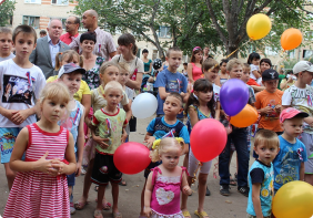 Открытие площадки сопровождалось большой игровой программой: пели и танцевали юные таланты, мальчишки и девчонки со двора с азартом принимали участие в играх и конкурсах. Веселый детский смех не смолкал до позднего вечера. Любовались городком и бабушки. Для них установлены удобные скамейки: можно и с соседками последние новости обсудить, и за внуками приглядывать.
