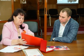 Председатель комитета по молодежной политике, культуре и спорту Михаил Видгоф встретился с южноуральской общественницей Еленой Савиновских, награжденной орденом «За заслуги» Республики Ингушетия.