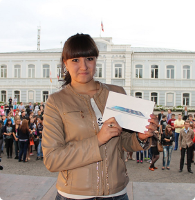 Самая интригующая часть праздника - розыгрыш 34 призов. На сцене установили барабан и с легкой руки студентов, артистов, ведущей праздника Марины Рукавишниковой посыпались объявления счастливых призов. «Везунчики» становились обладателями мини-айподов, телефонов, наушников, плееров, колонок, веб-камер.
