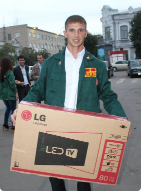 Но, пожалуй, больше всего радовался студент–второкурсник УГАВМ Николай Кобец. Командиру сводного строительного студотряда улыбнулась удача: Николаю, который приехал учиться в Троицк из Октябрьского района, достался главный приз розыгрыша - большой плазменный телевизор.