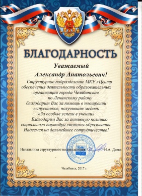 Депутат Законодательного Собрания Челябинской области Александр Фёдоров оказывает ощутимую поддержку целому ряду социальных объектов Ленинского района: детским поликлиникам № 6, 11, детскому дому № 8, реабилитационному центру «Вдохновение», одиннадцати школам, семи детским садам и библиотеке № 7 - а также находит время для поздравлений подшефных образовательных учреждений.