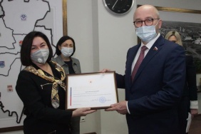 Сенатор вручил Почётную грамоту начальнику управления здравоохранения администрации города Челябинска Наталье Владимировне Горловой за большой вклад в развитие здравоохранения в Челябинской области.