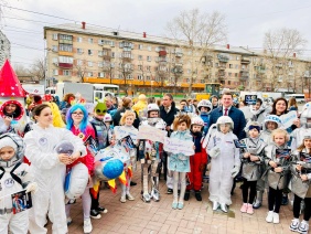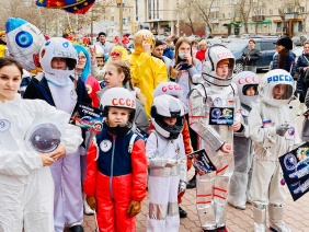 В первом «космическом» шествии приняли участие все школы Ленинского района. Идея организации акции принадлежит администрации района и местному Совету депутатов. Школы не только поддержали инициативу, но потрудились над космическими костюмами. Шествие вызвало добрые отклики у жителей района и сопровождалось приветствиями и поздравлениями с Днем космонавтики. Депутат Вадим Ромасенко уверен, что эта акция станет доброй традицией района.
