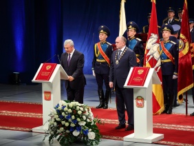 Председатель Законодательного Собрания области Владимир Мякуш поздравил Бориса Александровича с победой на выборах и торжественно вручил символ власти высшего должностного лица региона -- нагрудный знак губернатора. Владимир Мякуш заверил главу региона, что депутатский корпус Законодательного Собрания окажет ему поддержку.