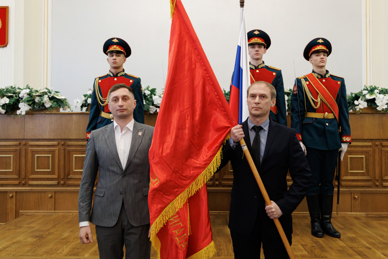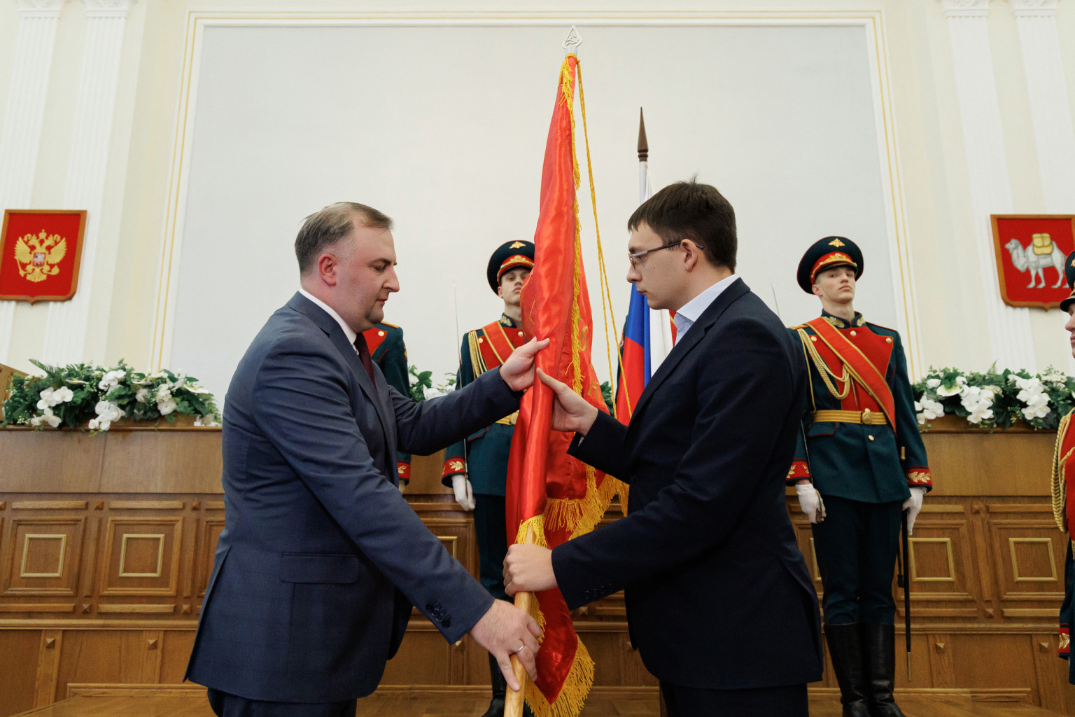Первый заместитель председателя Законодательного Собрания Денис Моисеев, депутаты Законодательного Собрания, участники специальной военной операции Алексей Рожков, Александр Казаков, Александр Заозёров приняли участие в передаче копий знамен 49-го гаубичного артиллерийского полка, 39-й пушечной артиллерийской бригады, 52-й гвардейской танковой бригады, 54-й механизированной бригады, 56-й тяжелой артиллерийской бригады на хранение предприятиям Челябинской области.
