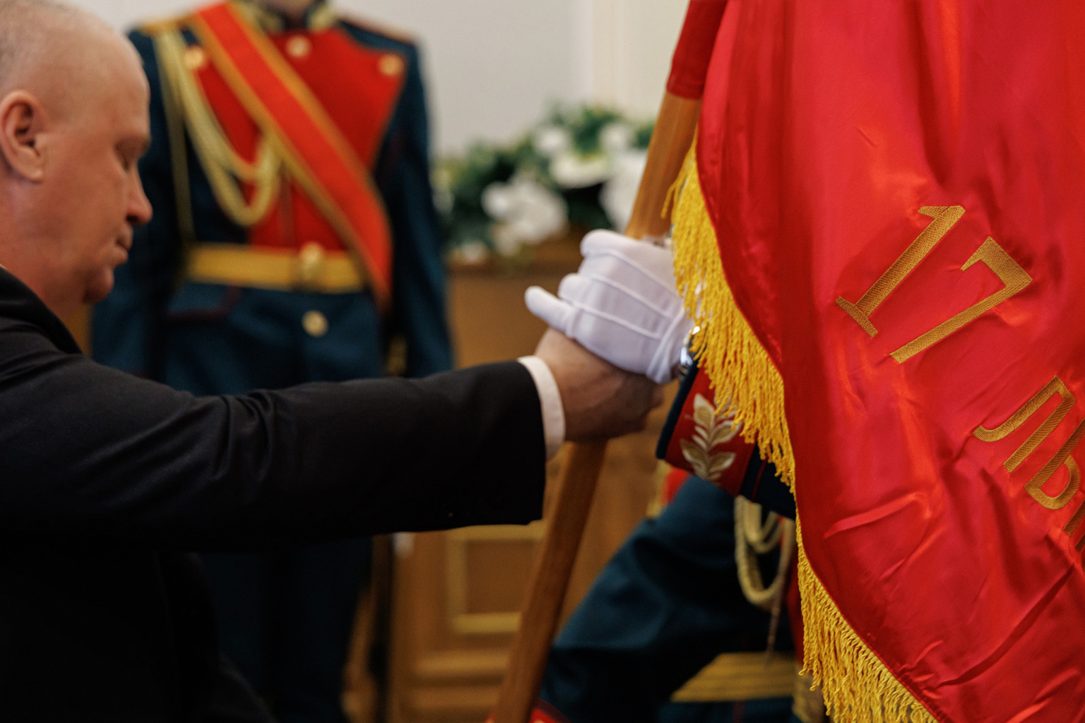 Всего в этот день было передано 32 копии знамен воинских частей.