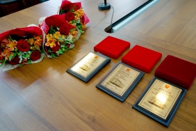Каждый лауреат был удостоен медали, нагрудного знака, диплома и конечно букета цветов, который помог создать праздничное настроение.
