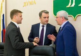 Председатель Законодательного Собрания Владимир Мякуш и депутаты областного парламента приняли участие в круглом столе, посвященном вопросам организации и деятельности городских округов с внутригородским делением.