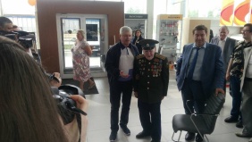 Накануне празднования Дня Победы состоялась встреча председателя Законодательного Собрания области Владимира Мякуша с участником войны Михаилом Константиновичем Резепиным.