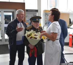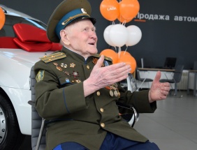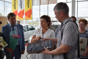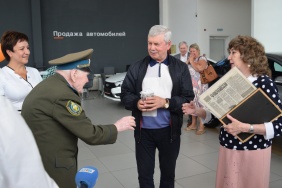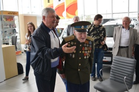 Сегодня ключи от нового автомобиля ветерану вручили председатель Законодательного Собрания Владимир Мякуш и депутат Законодательного Собрания Владимир Чебыкин. Михаил Константинович приехал в автоцентр на общественном транспорте, а возвратился домой с семьей на личном.