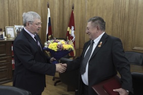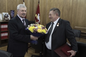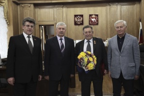 От имени депутатов и от себя лично Владимир Мякуш поздравил Владимира Сподаря с 65-летием и вручил юбиляру благодарственное письмо и медаль «За заслуги в законотворческой деятельности».